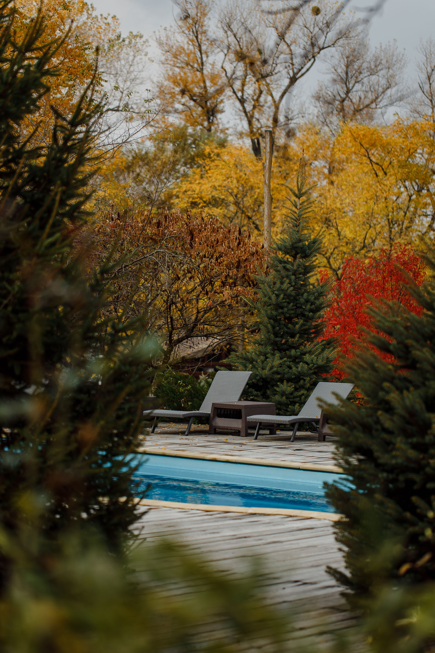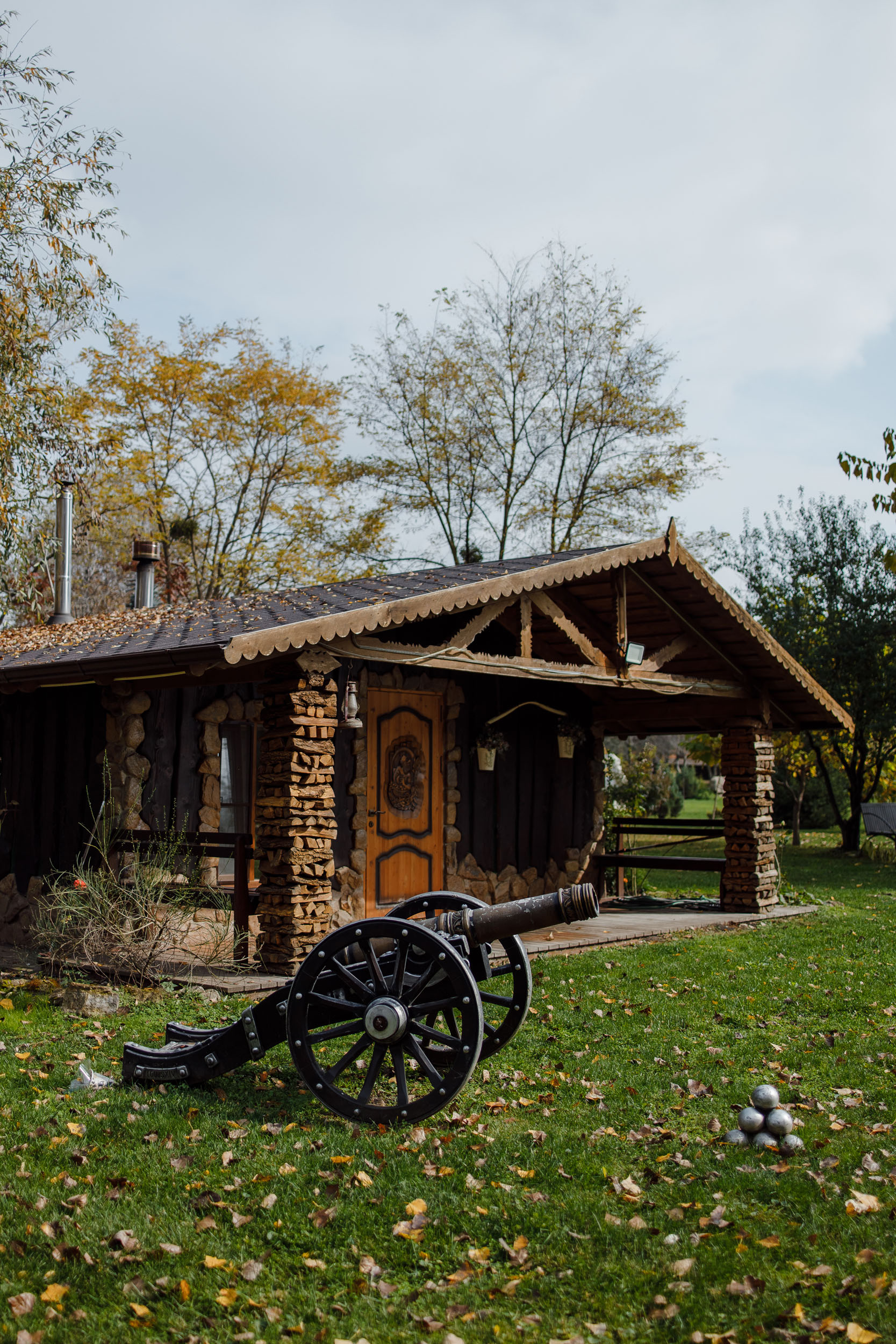 в холодное время года; баня на дровах в русском стиле. Вся территория засеяна мягкой газонной травой, по которой можно безопасно